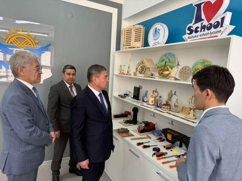 Бүгін Ақшұқыр мектеп-лицейіне ҚР Оқу-ағарту министрлігі Орта білім беру комитетінің төрағасы Қаныбек Жұмашев пен Маңғыстау облысы Білім басқармасының басшысы Амантай Кумбаев жұмыс сапарымен келді. Құрметті қонақтар мектептің оқу үдерісімен, материалдық-техникалық базасымен және білім беру сапасын арттыру бағытында жүзеге асырылып жатқан жұмыстармен танысты.